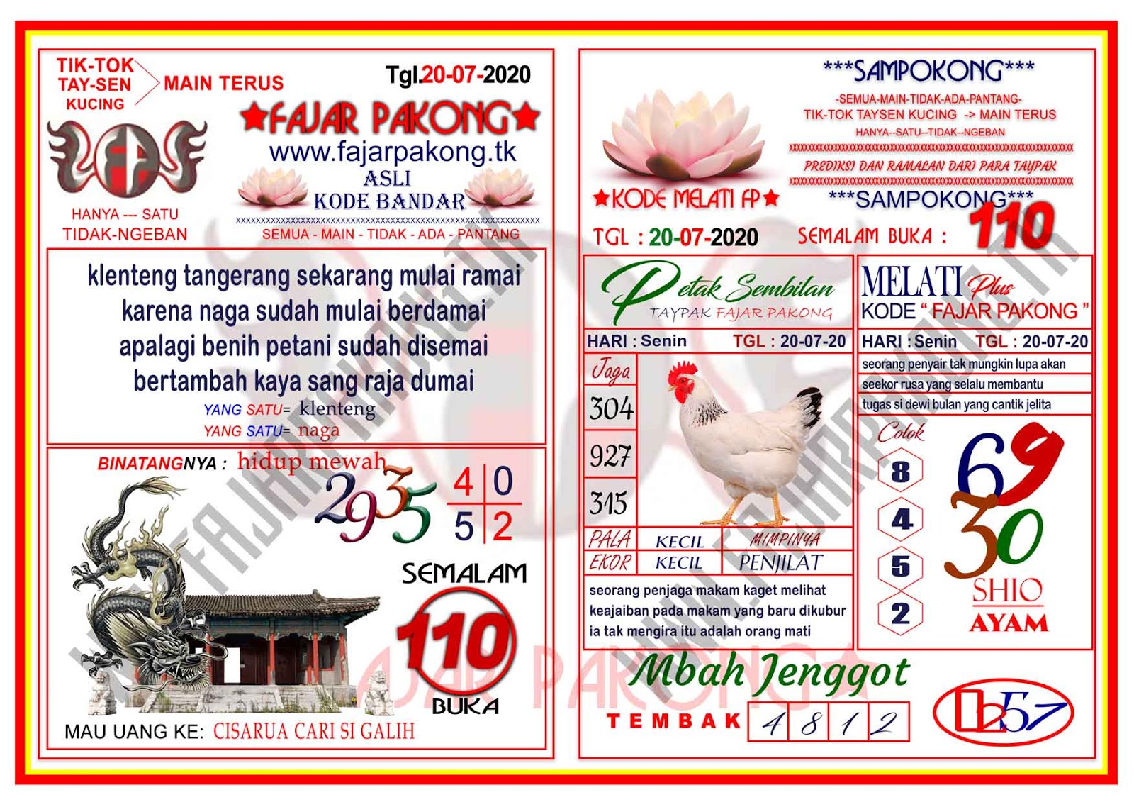 Dukun Angka Jitu Prediksi Togel SingaporeSGP - HongkongHK - SYDNEY Hari ini. Tentu akan semakin memudahkan setiap togelers untuk mendapatkan hasil togel hari ini. Dengan hadirnya syair sgp singapore Hari ini semoga sedikit membantu para togeler dalam menentukan angka yang terbaik dan ini hanyalah Angka referensi untuk Pasang Togel Online.